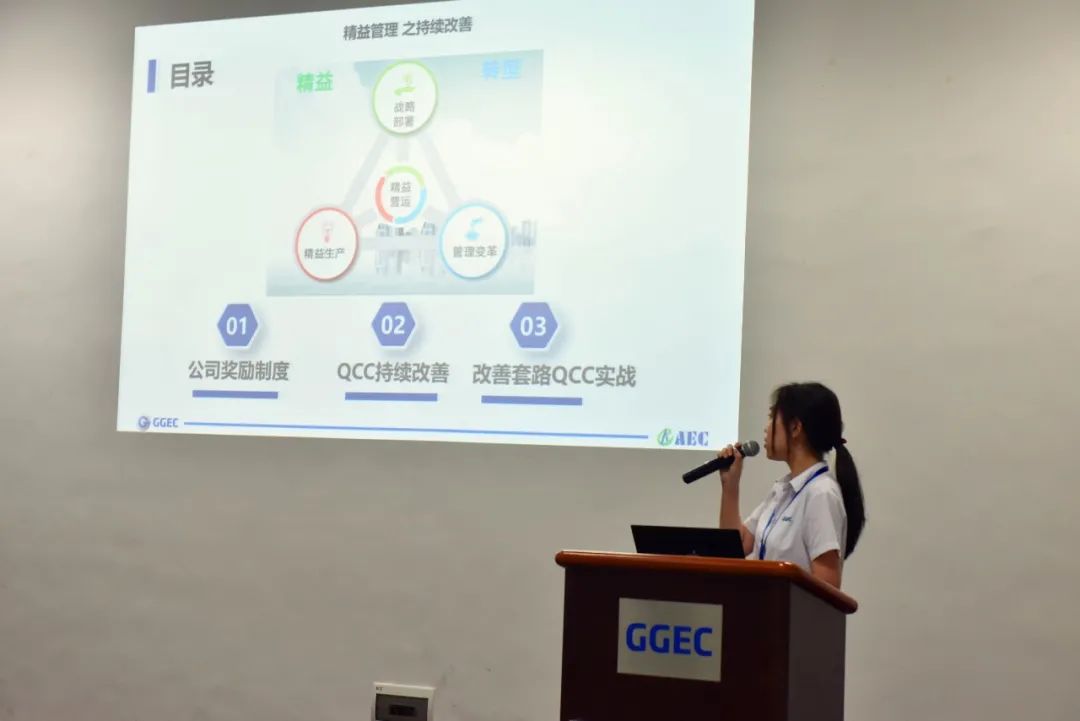 首先由質(zhì)管部工程師:雷思思介紹QCC活動(dòng)方案,通過(guò)獎勵制度,鼓勵在改進(jìn)、改良工具,提高生產(chǎn)安全性、提高產(chǎn)品質(zhì)量、提高勞動(dòng)效率、降低勞動(dòng)成本的優(yōu)秀表現者們,保持持續改善的工作方法,加強管理團隊精益求精的工作理念。