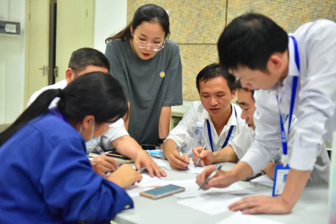 在其拋磚引玉下,質(zhì)管部李經(jīng)理融入各小組中,用風(fēng)趣幽默的方式與學(xué)員互動(dòng)講授。