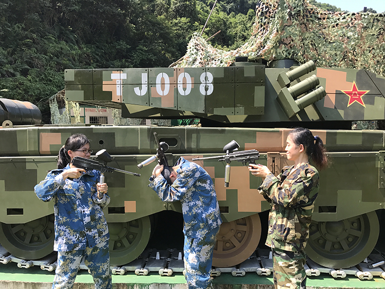 換好衣服后,我們在教官的指導下,我們進(jìn)行了一系列熱身活動(dòng)并學(xué)習了彩彈槍的使用方法和注意事項。幾輪活動(dòng)下來(lái),教官找出了幾個(gè)出錯最多的同事,讓他們每個(gè)人說(shuō)出一個(gè)“ABB”型的重疊詞,然后每個(gè)人做出一個(gè)茶壺的動(dòng)作,向螃蟹一樣橫著(zhù)走個(gè)來(lái)回,而且還要喊口號??粗?zhù)幾位同事賣(mài)力的表演,笑得我的眼淚都快要下來(lái)了。