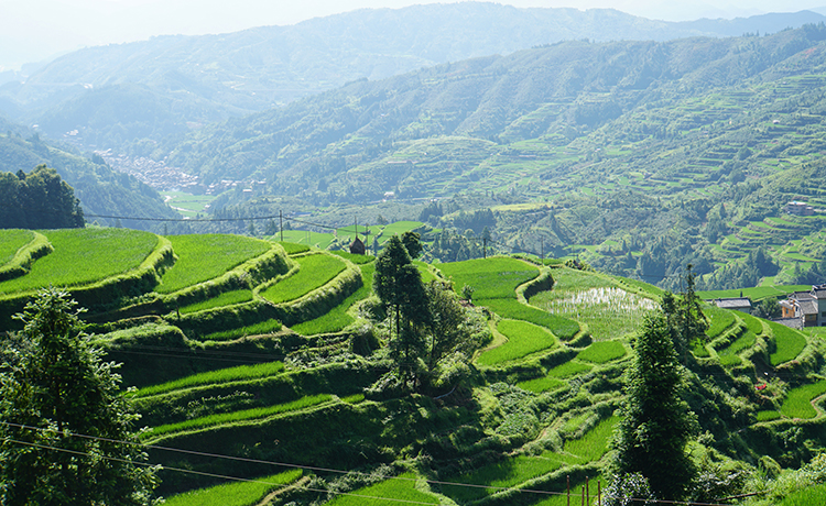 下午我們一起去了堂安梯田,層層疊疊的小塊水田,從最高處一層層流下來(lái)的山泉水澆灌著(zhù)半尺高的禾苗,綠油油的一大片,我們不禁佩服起這里人民的勤勞,梯田之間是沒(méi)有馬路的,全部都是半米寬不到的坑坑洼洼的田間小路,所以汽車(chē)、摩托車(chē)、單車(chē)等任何交通工具都是無(wú)法經(jīng)過(guò)的,全靠腳下兩條腿,待稻子成熟后,收成后的谷子將只能完全靠人工背上去。一路欣賞著(zhù)美麗的田園、小溪,古村古寨等自然風(fēng)光,非常愜意。這里的白天雖然紫外線(xiàn)很強,但是有樹(shù)蔭的地方,涼風(fēng)習習,讓人感覺(jué)休閑又舒適,晚上的氣溫只有22度左右,這樣的溫度出去散步是最舒服的,路邊的商鋪跟房子全部亮起了燈,此刻的侗寨又是另外一番風(fēng)景。